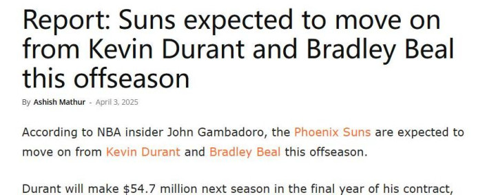 而如果杜兰特愿意留下并帮助球队实现新的目标,那这就是太阳另一条可能的出路。
