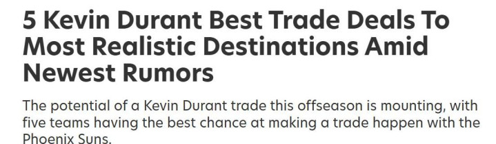 对于太阳而言,送走杜兰特换取未来发展空间无疑是可行的选择。